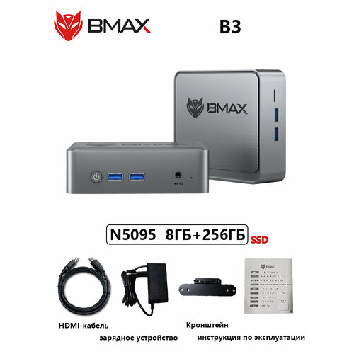 Мини ПК BMAX B3, Intel N5095, RAM 8 ГБ, ROM 256 ГБ SSD, Intel UHD Graphics, Windows 11 Pro, Серебристо-серый