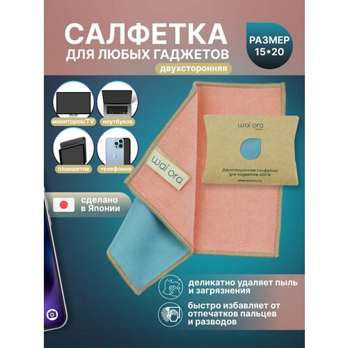 Двухсторонняя безворсовая салфетка для гаджетов "2in1" для очистки монитора, ноутбука, телевизора, планшета (Kоралловый и голубой)