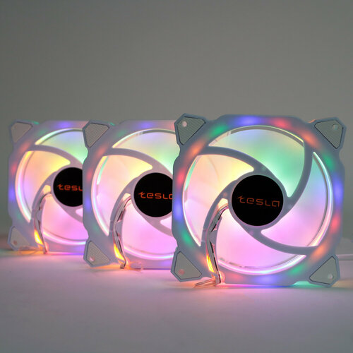 Набор из 3 вентиляторов TESLA RGB 120-3D3, 120мм, 1200rpm, 3-pin+Molex, белый/RGB