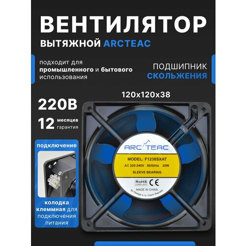 Вентилятор осевой ARCTEAC F1238SXAT-TB 120х120х38мм 230В AC 0.14А 161куб. м/ч 20Вт скольжения 2700об/мин клемма, 1 шт
