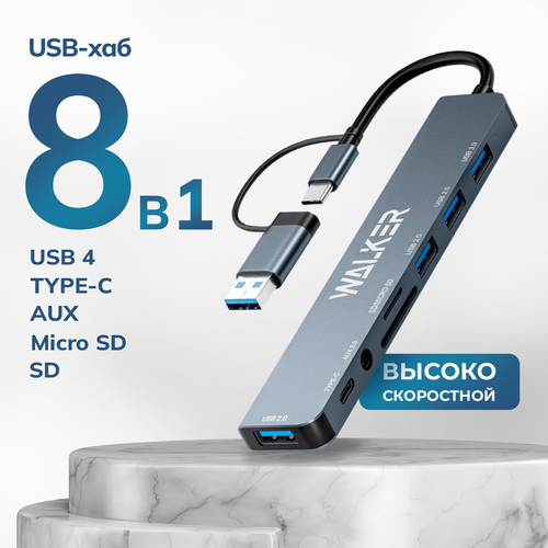 Разветвитель USB HUB 8 в 1, 4 USB, typec, AUX, Micro SD, SD, usb концентратор для macbook, hub с внешним питанием