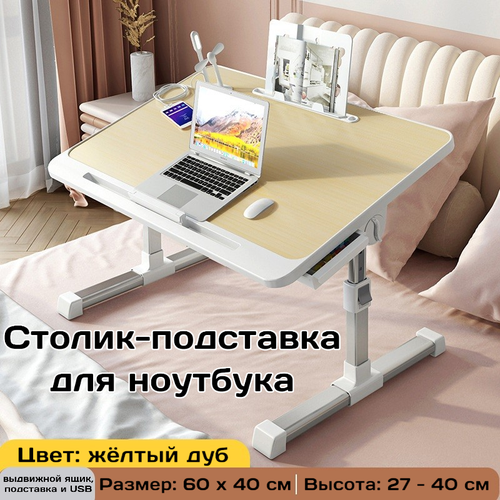 Стол-подставка для ноутбука с выдвижным ящиком, подставкой и USB, жёлтый, маленький домашний рабочий компьютерный столик