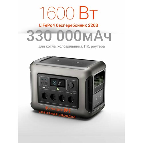 ИБП LiFePo4 бесперебойник 1600Вт розетка 220 В портативная электростанция для дома дачи котла холодильника