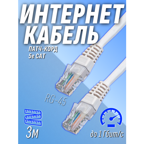 Интернет кабель патчкорд UTP 3 метра категория 5e 1 Гбит/с