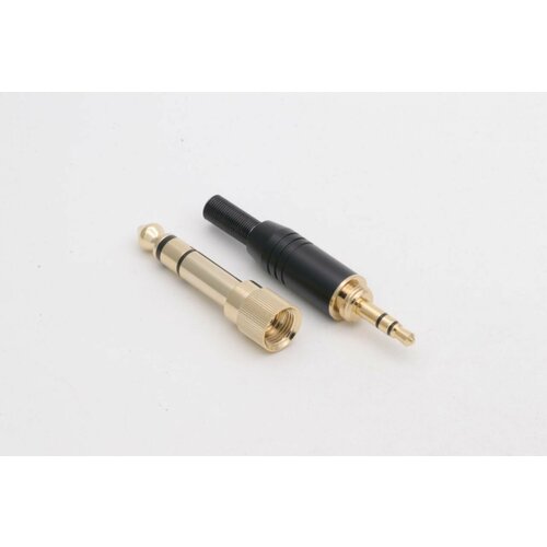 Комплект - позолоченный резьбовой кабельный черный разъем Jack 3.5 мм и переходник на Jack 6.3 мм TRS (стерео)