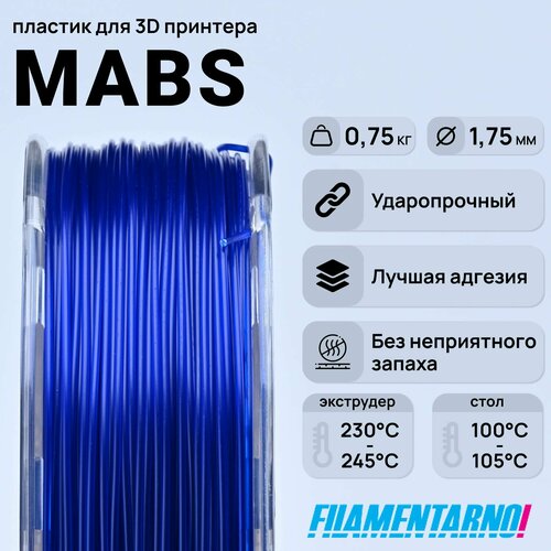 MABS синий прозрачный 750 г, 1,75 мм, пластик Filamentarno для 3D-принтера