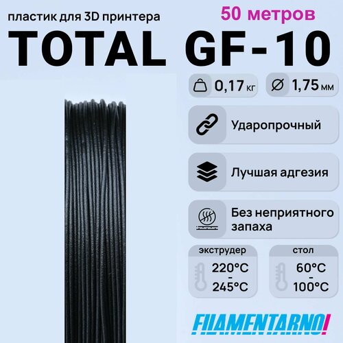 Пластик для 3D принтера 1.75 мм Filamentarno TOTAL GF-10 (0.75 кг)Страна производства: Россия