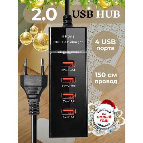 Переходник для Macbook и ноутбука usb Hub 4 в 1 длина 12 см, черный адаптер