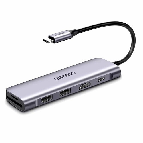 Ugreen CM195 (70410) USB-C to 3 Ports USB3.0-A Hub + HDMI + TF/SD space grey usb хаб