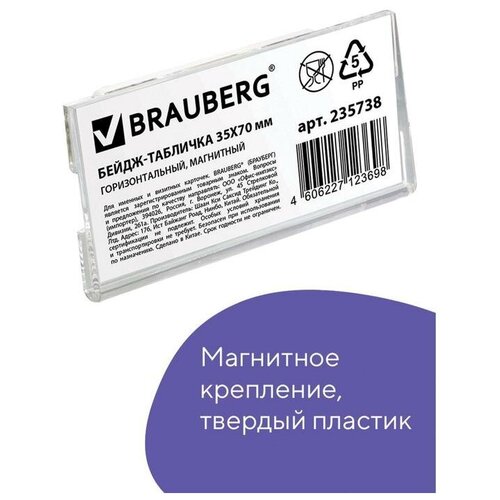 Brauberg Бейдж-табличка горизонтальный 35 х 70 мм, магнитный