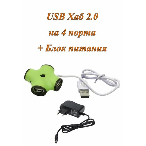 Активный разветвитель концентратор USB хаб (HUB) CBR CH-100 на 4 порта USB 2.0 с блоком питания 2A в комплекте