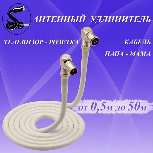 Кабель антенный телевизионный 30 м. папа (угловой)-мама (угловой). Кабель удлинительный. Кабель розетка-телевизор. Штекер-Гнездо.