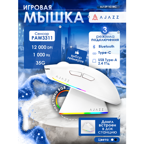Игровая беспроводная мышь AJAZZ AJ159APEX с док-станцией, Bluetooth/Wi-fi (2.4гг)/USB