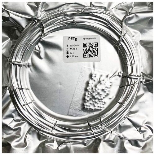 PETg прозрачный моток 50 м, 1,75 мм, пластик Filamentarno для 3D-принтера