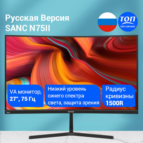 Sanc N75II 27" 75 Гц Изогнутый VA монитор 1500R Широкий угол обзора Микро рамка Настенное крепление Изогнутый монитор