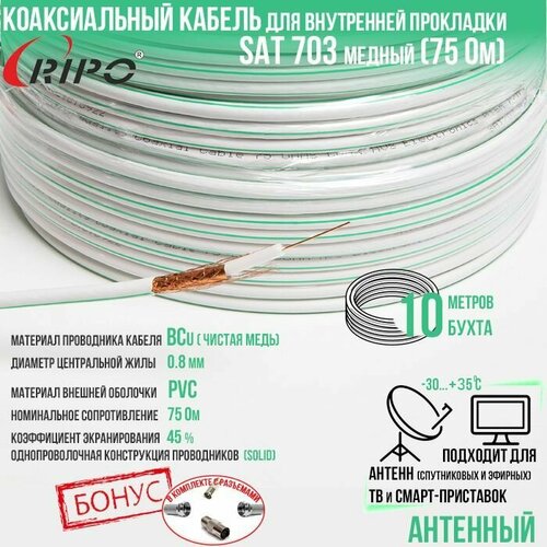 Антенный медный коаксиальный (телевизионный) кабель SAT-703 indoor внутренний белый для передачи видео, 10 метров