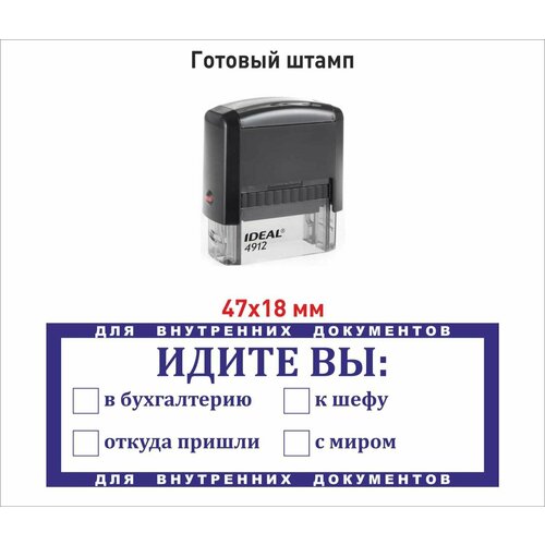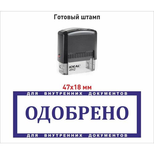 Готовый штамп на автоматической оснастке IDEAL by Trodat 4911 со встроенной штемпельной подушкой синего цвета. Клише изготовлено из...