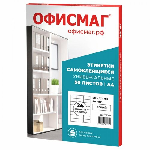 Этикетки самоклеящиеся Офисмаг (70х37,1мм, 24шт. на листе, 70г/кв. м) 50 листов (115199)