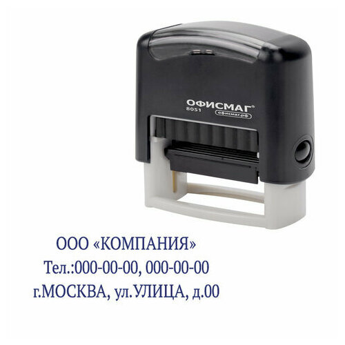 Печать самонаборная канцелярская, штамп самонаборный 3-строчный, касса букв и цифр, оттиск 38х14 мм, Офисмаг Printer 8051, 271923
