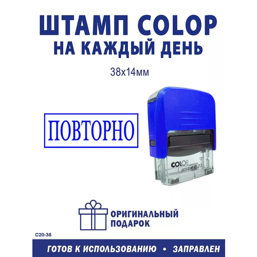 Оснастка для штампа COLOP Printer C20 "Повторно №2", автоматическая, 38x14 мм, синяя