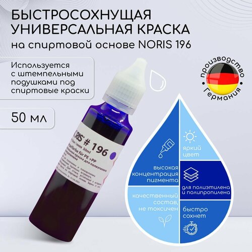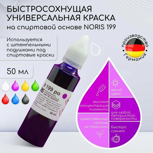 Фиолетовая универсальная штемпельная краска Noris 199 / Штемпельные чернила / на спиртовой основе, 50 мл