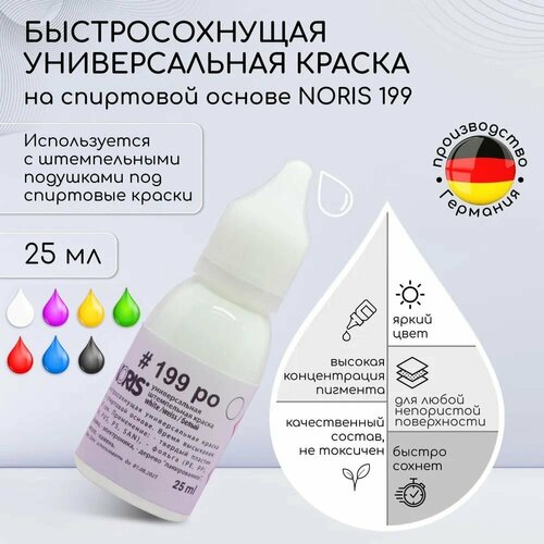 Белая универсальная штемпельная Noris 199 / Штемпельные чернила / краска на спиртовой основе, 25 мл