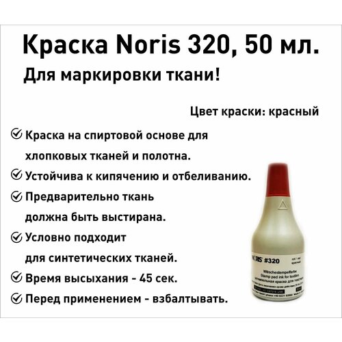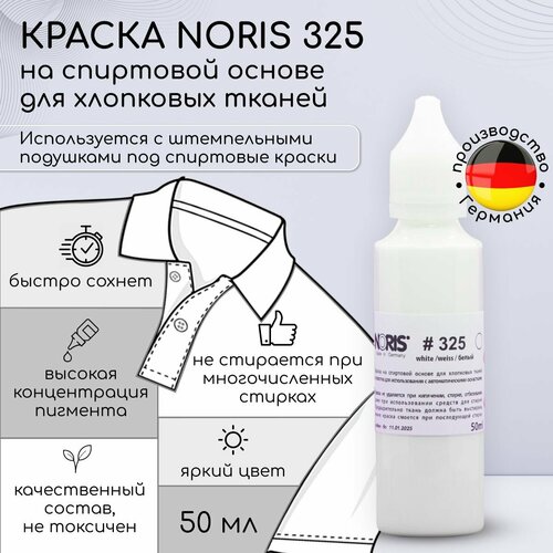 Штемпельная белая краска Noris 325 для маркировки ткани, одежды / Штемпельные чернила на спиртовой основе, 50 мл