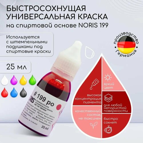 Красная универсальная штемпельная Noris 199 / Штемпельные чернила / краска на спиртовой основе, 25 мл