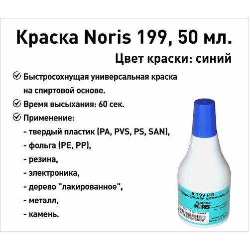 Синяя универсальная штемпельная краска Noris 196 / Штемпельные чернила / на спиртовой основе, 50 мл