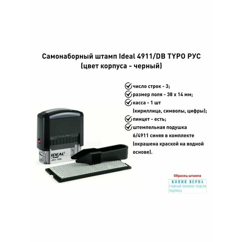 Штамп IDEAL IDEAL 4911 "КОПИЯ ВЕРНА, подпись", 38х14 мм, 1 шт.