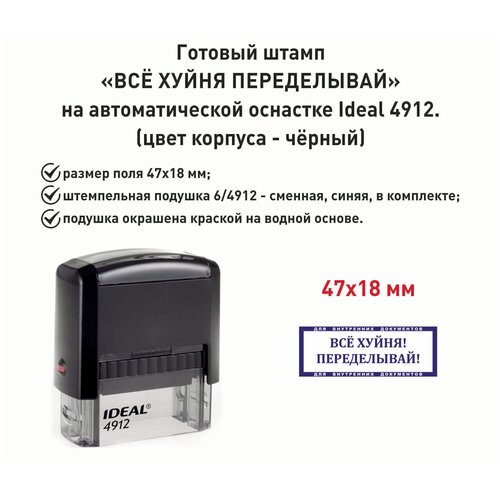 Штамп IDEAL IDEAL 4912 Typo самонаборный, 47х18 мм
