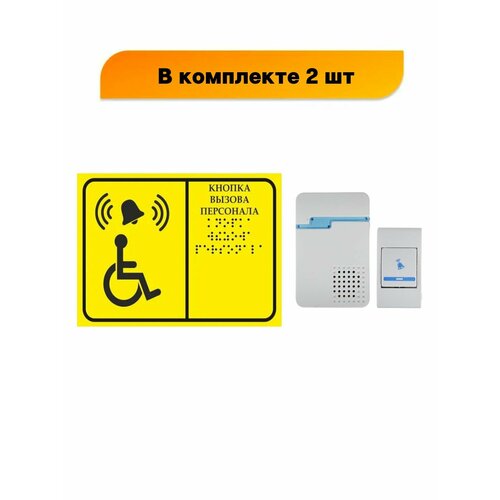 Звонок + кнопка Тактильная табличка со шрифтом Брайля "Кнопка вызова персонала" 150х200мм для инвалидов, в комплекте 2 шт (Ф)