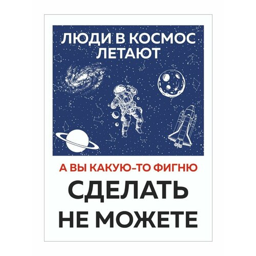 Информационная табличка "Люди в космос летают. А вы какую-то фигню сделать не можете" из пластика 3 мм, 200х270 мм (Ф)