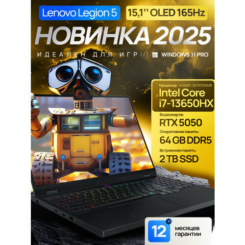 15.1" Игровой ноутбук Lenovo Legion 5 OLED Gen 10 (2025), (2560x1600), 165Hz, 130% sRGB, Intel Core i7-13650HX (4.9 ГГц), RAM 64 ГБ DDR5, SSD 2 ТБ, NVIDIA GeForce RTX 5050 (8 Гб GDDR7), Windows 11 Pro + Office 2021 Pro Plus, Русская раскладка