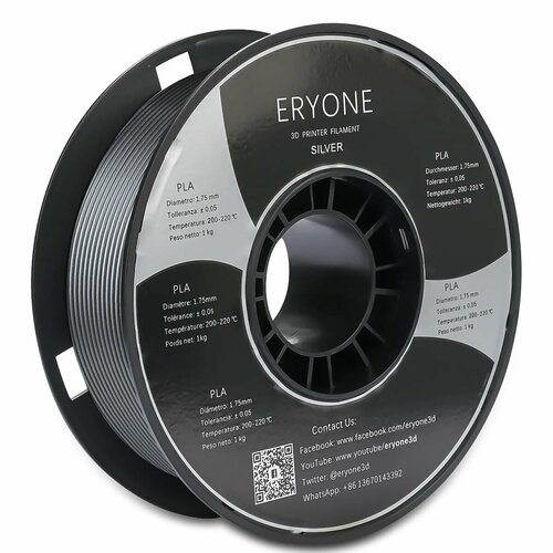 PLA пластик (филамент) для 3д принтера Eryone Серебристый 1,75 мм 1 кг