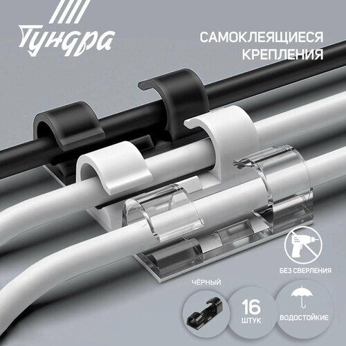Держатель самоклеящийся для проводов и гирлянд тундра krep, черный, 16 шт.