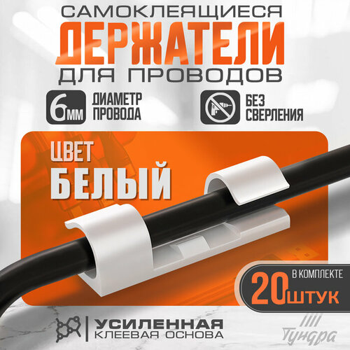 Держатель самоклеящийся для проводов тундра krep, d=20 мм, 60х20х40 мм, белый, 4 шт. (1шт.)