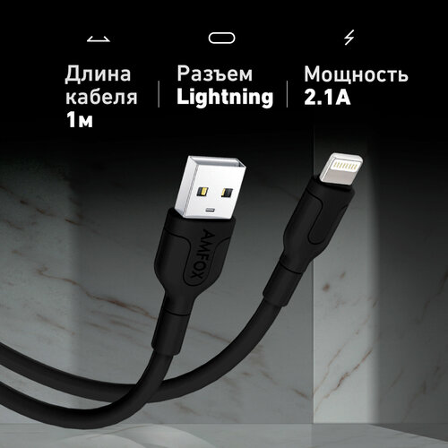 Кабель USB с быстрой зарядкой и передачей данных, AMFOX, C11, 2.1А, Lightning, провод для зарядки айфона, шнур лайтининг, юсб для Iphone Apple, черный