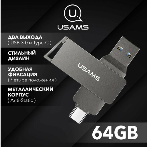 USB Флеш-накопитель USAMS USB 3.0 - Type-C 64 Гб, флешка для телефона, компьютера