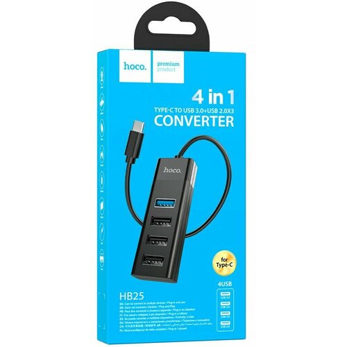 Хаб USB Hoco HB31 Type-C 4xUSB 3.0 Black 6931474784919