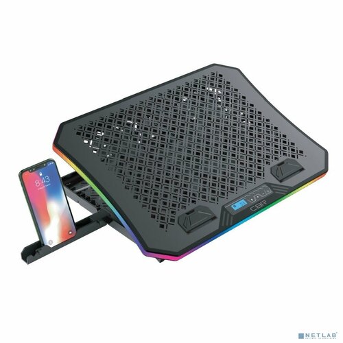 Подставка для ноутбука CBR CLP 17202 до 17, 390x270x25 мм, с охлаждением, 2xUSB, вентиляторы 2х150 мм, 20 CFM, LED-подсветка, материал металл/пластик