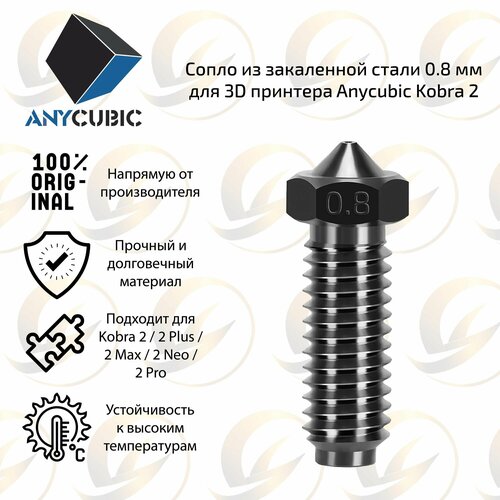 Оригинальное сопло из закаленной стали 0.8 мм для 3D принтера Anycubic Kobra 2