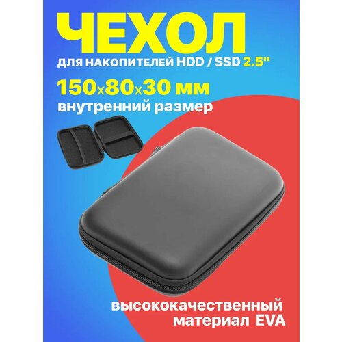 Чехол GSMIN для внешнего жесткого диска HDD и SSD 2.5", 150х80х30мм (Черный)