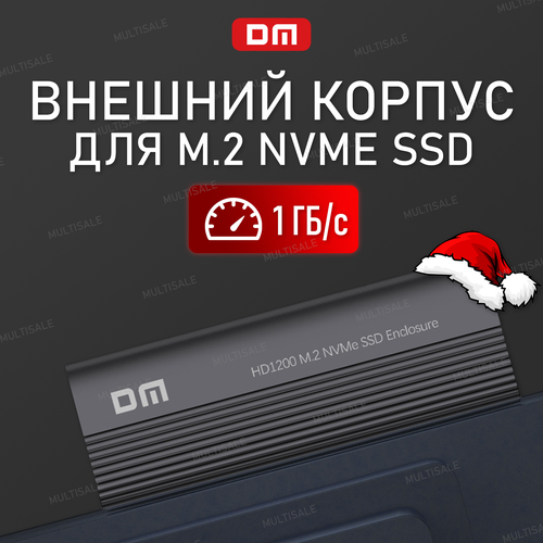 Внешний алюминиевый корпус DM Life HD1200 для дисков SSD M.2 NVMe USB 3.1 Type-C, тёмно-серый