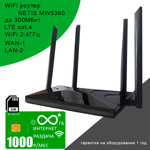WiFi роутер NETIS MW5360 + сим карта с безлимитным* интернетом за 1000р/мес.