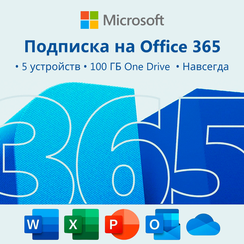 Microsoft Office 365, Бессрочный аккаунт на 5 устройств, мультиязычный, для Windows и мобильных устройств