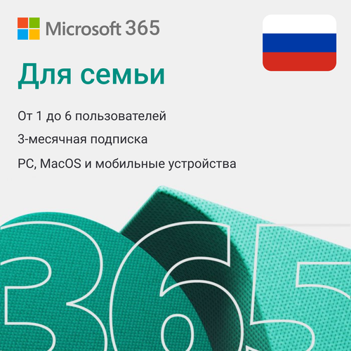 Microsoft Office 365 для семьи (3 месяца / официальная лицензия Microsoft 365 Family / Россия и СНГ)