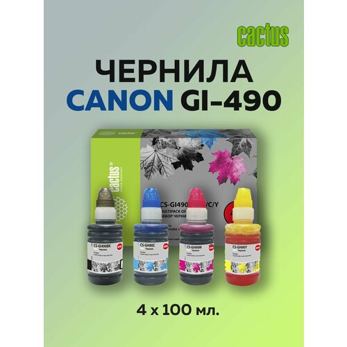 Чернила Cactus GI-490 набор 4x100мл для Canon Pixma G1400, G2400, G3400