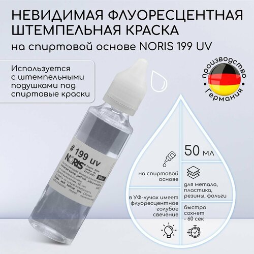 Невидимая флуоресцентная штемпельная краска на спиртовой основе Noris 199 UV 50 мл / Голубое свечение