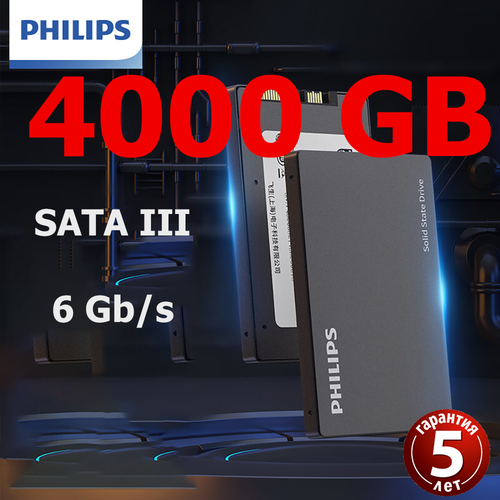 SATA SSD, Philips, скорость чтения 500 МБ/с, 4TB, скорость записи 480 МБ/с. SATA SSD,500MB/s,480MB/s